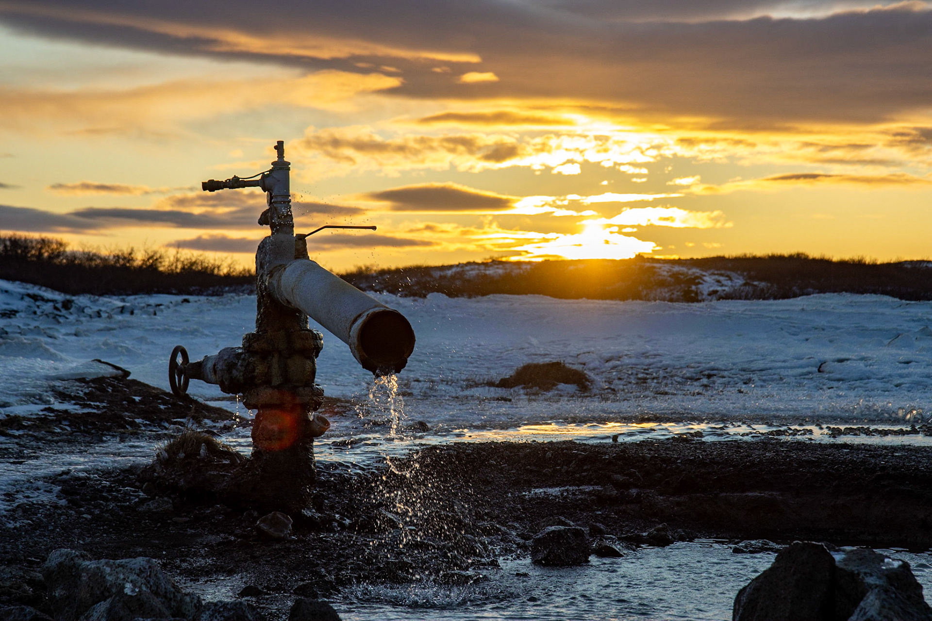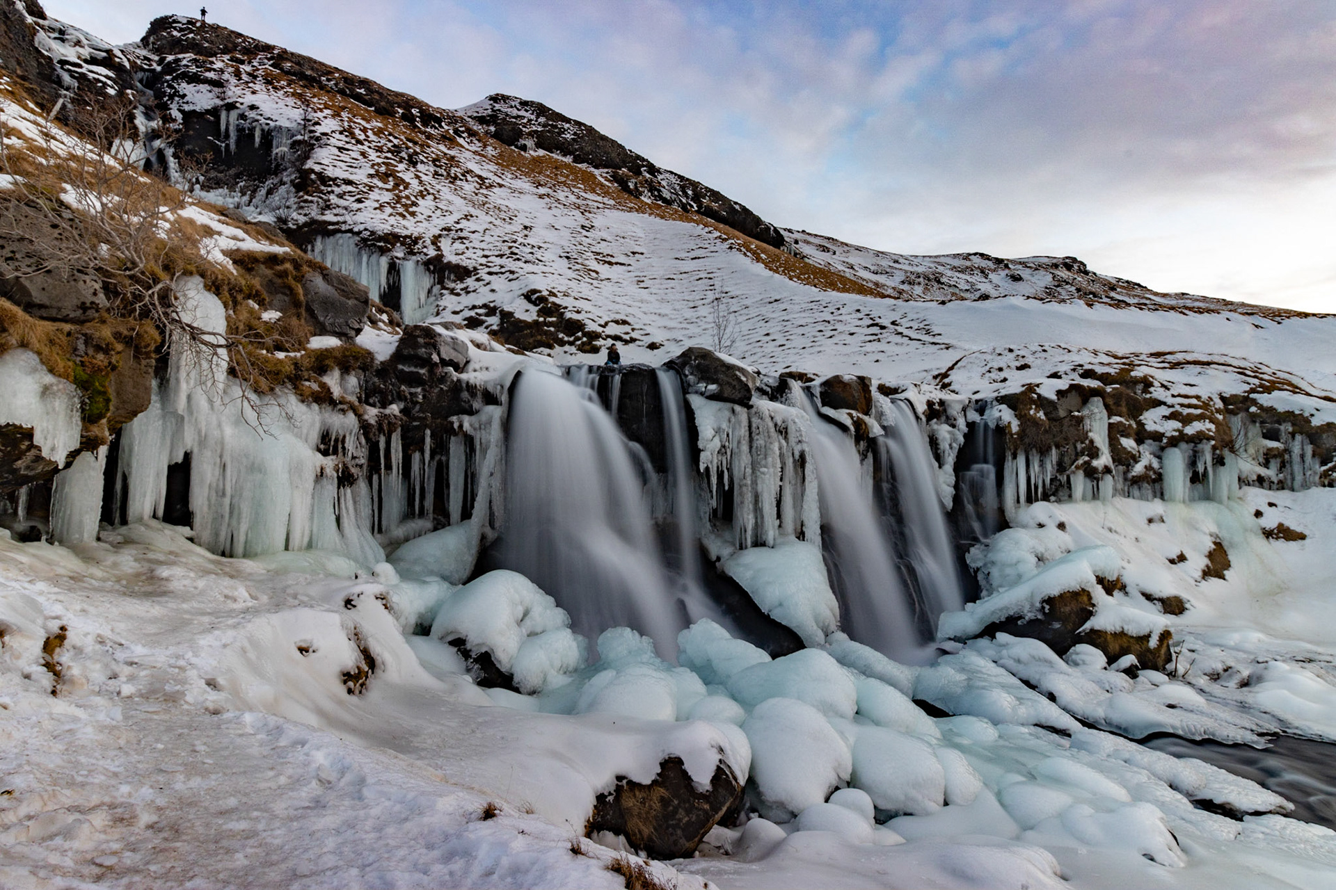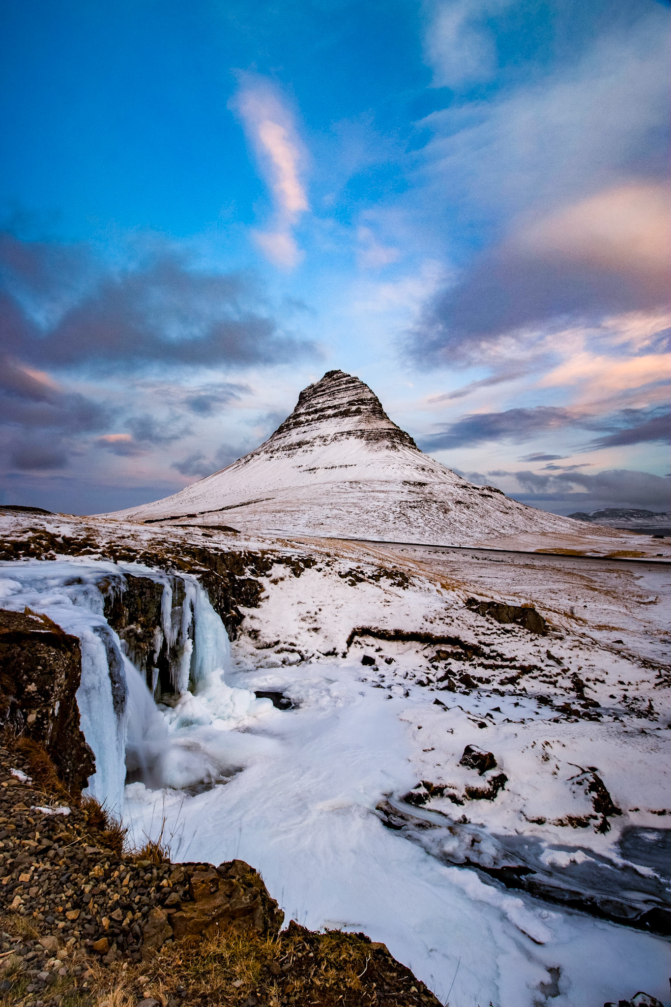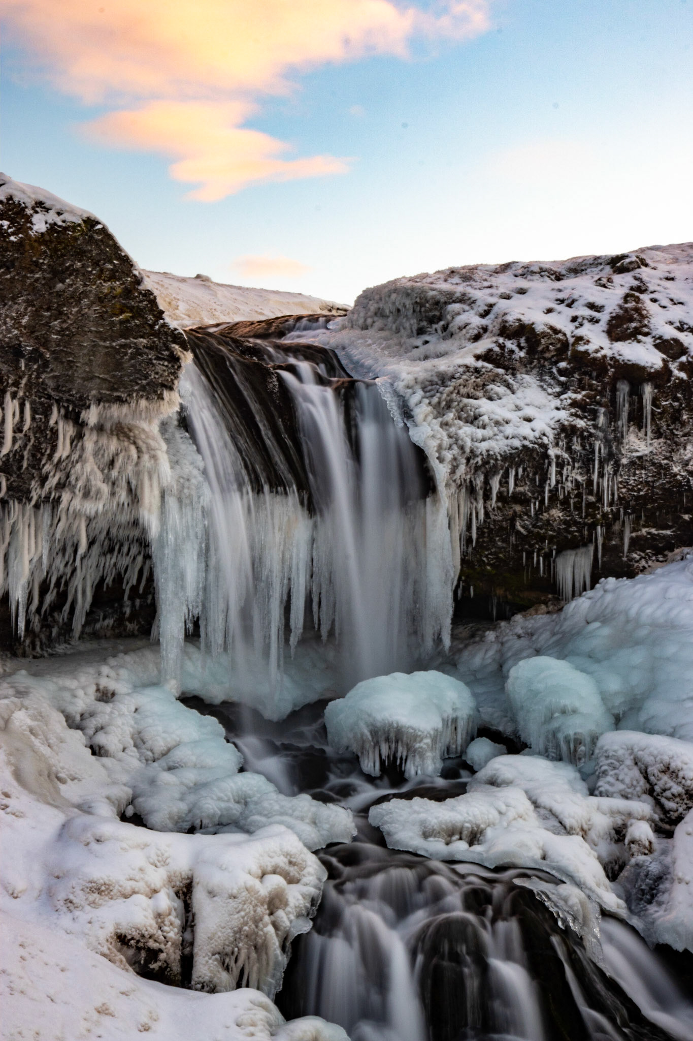 Sunset over Langárfoss waterfall